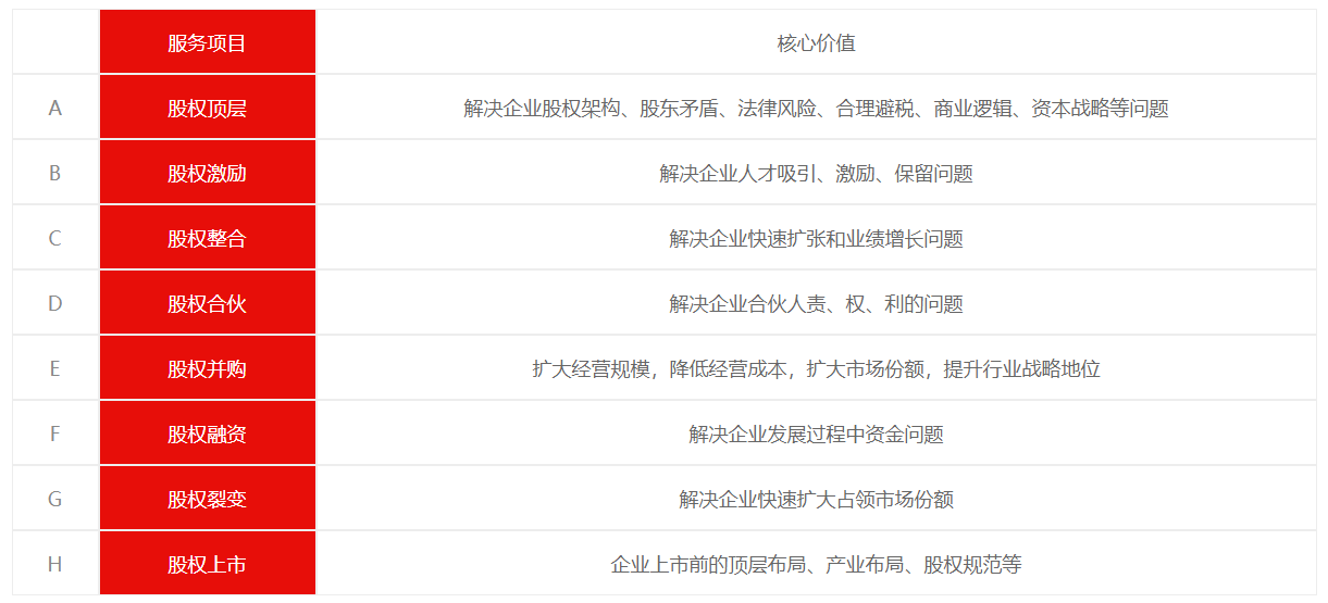 解決企業(yè)股權(quán)架構(gòu)、股東矛盾、法律風(fēng)險、合理避稅、商業(yè)邏輯、資本戰(zhàn)略等問題